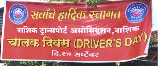 नाशिक,दि. ११ सप्टेंबर :- ट्रक चालकांना भेडसावत असलेल्या आरोग्यविषयक समस्यांवर उपाययोजना म्हणून दि.१७ सप्टेंबर २०१९ रोजी चालकदिनी आडगाव ट्रक टर्मिनल येथे त्यांचा यथोचित सत्कार करून त्यांच्यासाठी मोफत आरोग्य तपासणी शिबिराचे व गणवेश वाटप नाशिक ट्रान्सपोर्ट असोसिएशनकडून आयोजन करण्यात आले आहे. या आरोग्य तपासणी शिबिराचा जास्तीत जास्त नाशिक ट्रान्सपोर्ट असोसिएशनचे अध्यक्ष जयपाल शर्मा, वरिष्ठ उपाध्यक्ष राजेंद्र फड,सेक्रेटरी सुभाष जांगडा यांनी केले आहे.